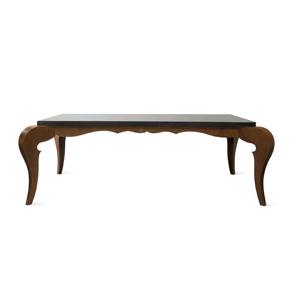 Barocker Tisch zum Essen und Arbeiten. Die Beine sind aus Eisen in Edelrost. Die Holzplatte wird nach Wunsch gefertigt. Die Tischbeine stehen über die Tischplatte heraus, so das man einen großzügigen Raum braucht.